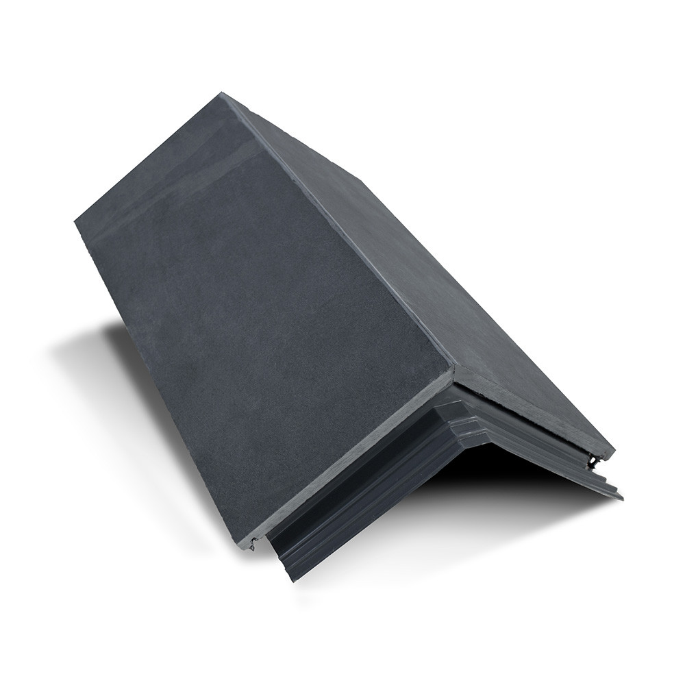 Featuring full cover 200mm extra-wide wings, the Mayan RealRidge Natural Slate All-in-One Graphite Block End is available in various angles to suit a range of roof pitches.