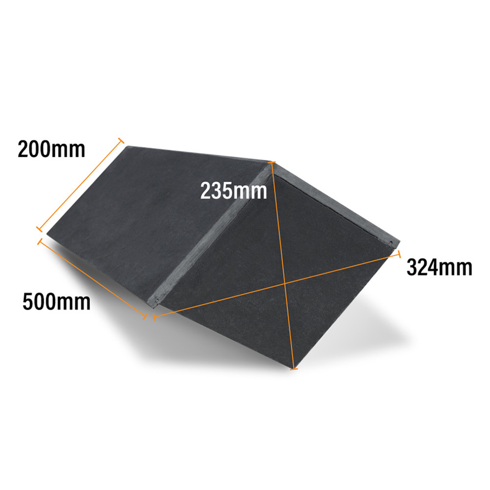 Made from 12mm thick natural grey slate that will blend seamlessly with graphite-coloured slate tiles, the block end ridge is chemically and mechanically bonded to a long-life weatherproof glass-reinforced polyester (GRP) liner. Its precision-cut edges will also provide a straight and professional finish to your roof.