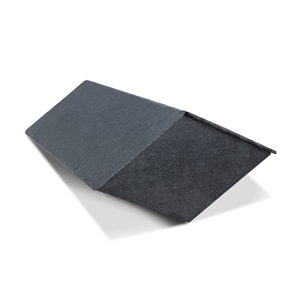 Fully compliant with BS 5534 and BS 8612, this block end ridge tile is made using premium quality 6mm thick grey roofing slate that is chemically and mechanically bonded to a proven long-life weatherproof glass-reinforced polyester (GRP) liner.