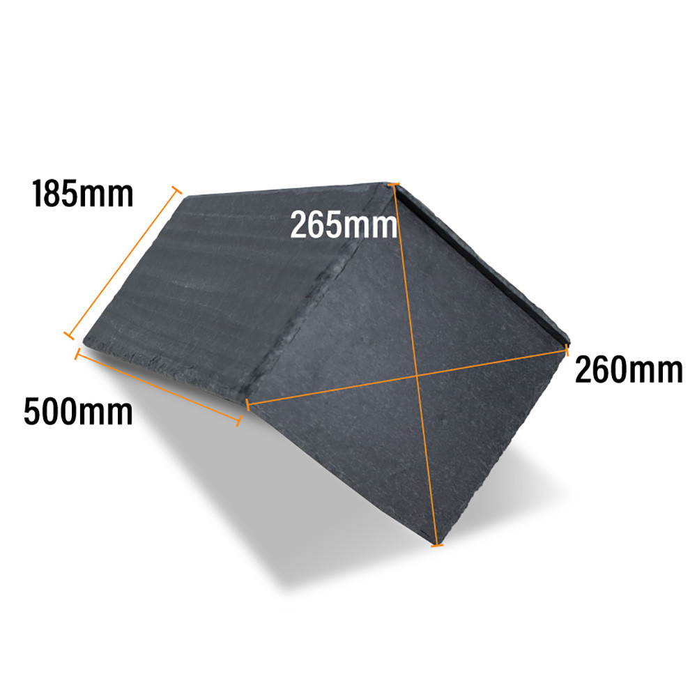 Fully compliant with BS 5534 and BS 8612, this block end ridge tile is made using premium quality 6mm thick grey roofing slate that is chemically and mechanically bonded to a proven long-life weatherproof glass-reinforced polyester (GRP) liner.
