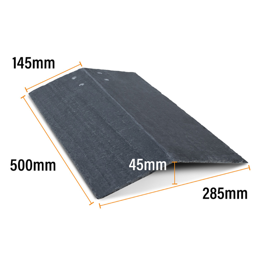 It provides fortuitous ridge ventilation, which is the equivalent of a roll-out ridge system, meaning there is no need for you to use a roll-out fixing system. It is manufactured from high-quality 6mm thick grey roofing slate and is chemically and mechanically bonded to a proven long-life glass-reinforced polyester (GRP) liner, providing excellent weatherproof properties.