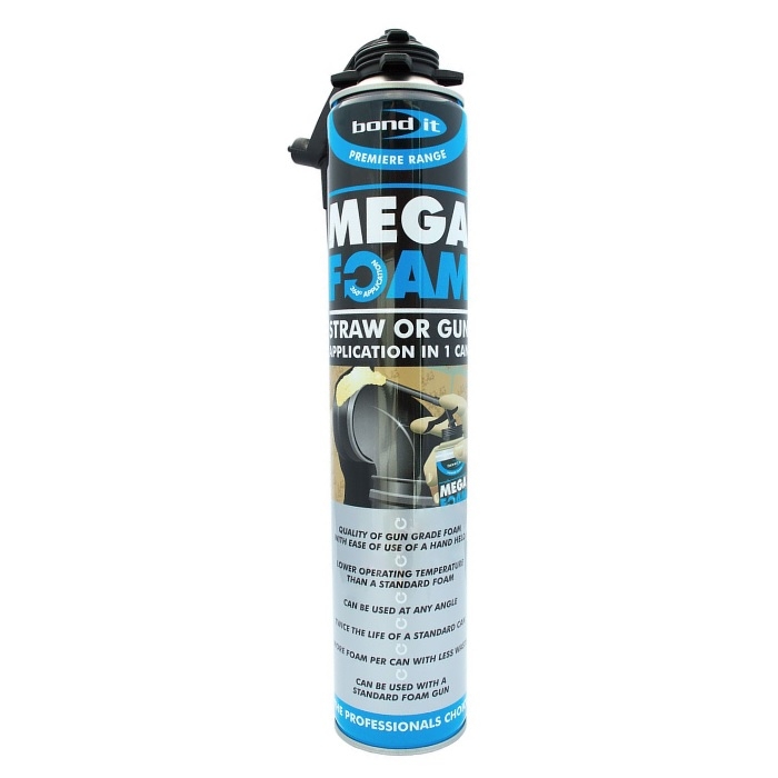 The Mega Foam Gun / Aerosol PU Expanding Foam is a high performance, polyurethane expanding foam available for use as an aerosol grade using patented adaptor or by simply fixing a gun applicator can be used as gun grade. Quick, economic and easy to apply for fitting doors, windows and insulating pipes and filling gaps. Improves draught and heat insulation and deadens noise. Fitted with new, unique valve which allows for multi-directional use.