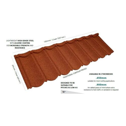 This .900mm Metrotile Bond Roof Tile is perfect for offering enhanced durability and peace of mind in areas with high foot traffic or potential vandalism. With the classic appearance of traditional clay pantiles, it is coupled with the numerous benefits of lightweight steel ro... Read More