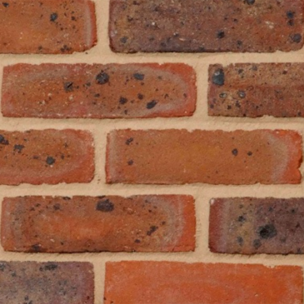 This Michelmersh FLB 1st Quality Multi Facing Brick is a red multi-coloured frogged stock brick with a sandfaced finish, blending orange, purple, and brown hues seamlessly for both modern and traditional builds.