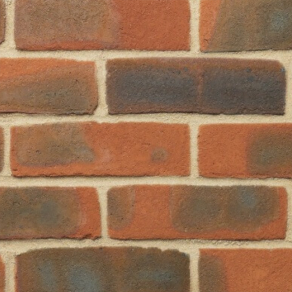 • A traditional frogged stock brick comprising an array of warm red and brown clay tones