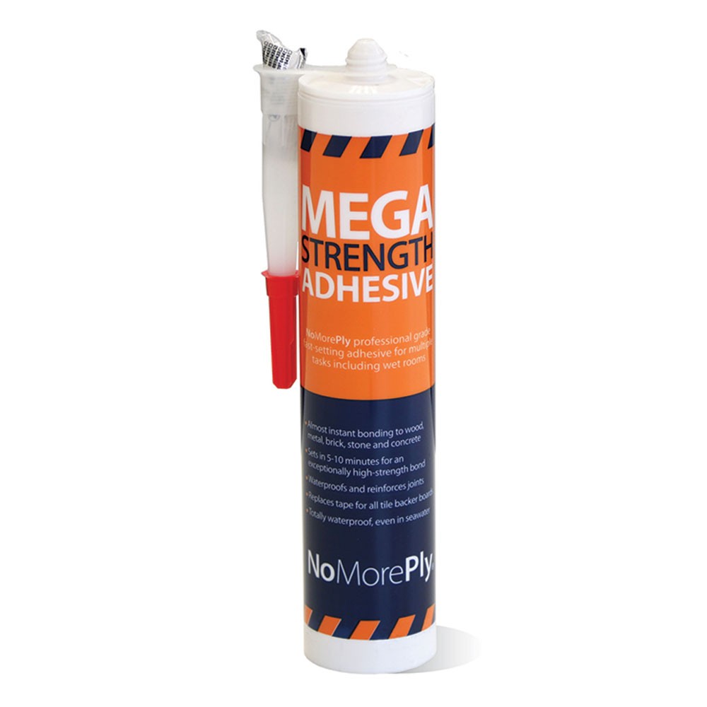Ensure your NoMorePly boards are secured quickly and securely to a variety of substrates with this high-strength, high-performance and fast setting NoMorePly Mega Strength Adhesive. Fully waterproof, including resistance to seawater, this adhesive is easy to apply and removes the need for you to use jointing tape.