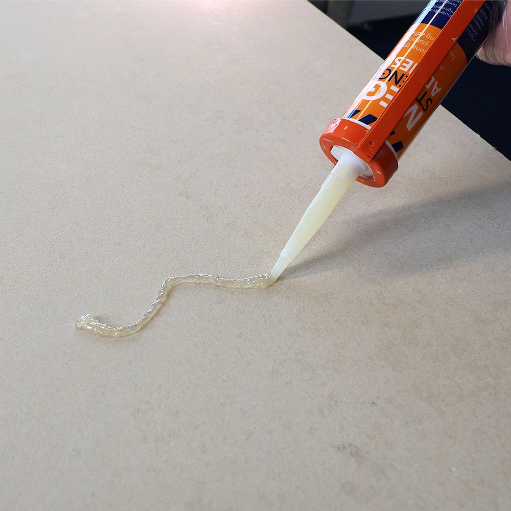 • When using Mega Strength adhesive to seal between NoMorePly boards, the adhesive will expand and foam slightly. This reaction is due to the nature of PU adhesive. You should remove any excess adhesive with acetone, and if it has already set solid, you can remove this with a sharp chisel.