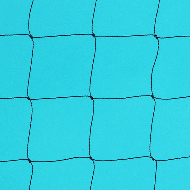 This net is manufactured from knotted polyethylene. It does not absorb water, meaning that it will not stretch and is chemically inert. The nets are UV light stabilised and appropriate for use in direct sunlight in various climates. It is expected to resist UV degradation in excess of 10 years in average UK sunlight conditions. These nets are also constructed from monofilaments that have been designed for bird net systems. Extruded to 0.3mm thick, they are twisted into a 12/9 strands thick twine.