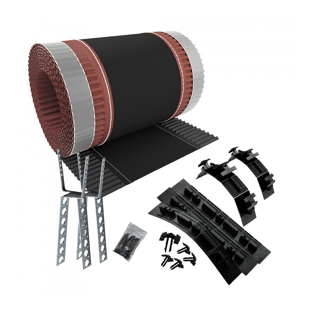 Providing a smooth and discreet appearance that blends seamlessly with the roofline and guarantees a durable seal, the kit includes all the items you will need, such as a high-permeable ridge roll with tape, thirteen brackets, screws, and clamps, making it a complete and convenient package for your project.