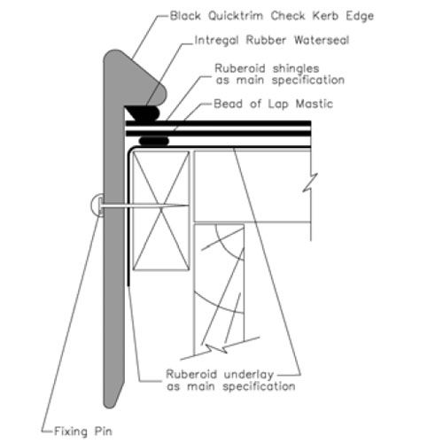 Quicktrim Check Kerb Edge Section for Bitumen Shingles (2.5m) ~ Black Perimeter Termination Kerb Trim 100mm Deep 2.5 Metre Length Colour Black Packs contain all the fixing pins and jointing clips required for installation. Read More