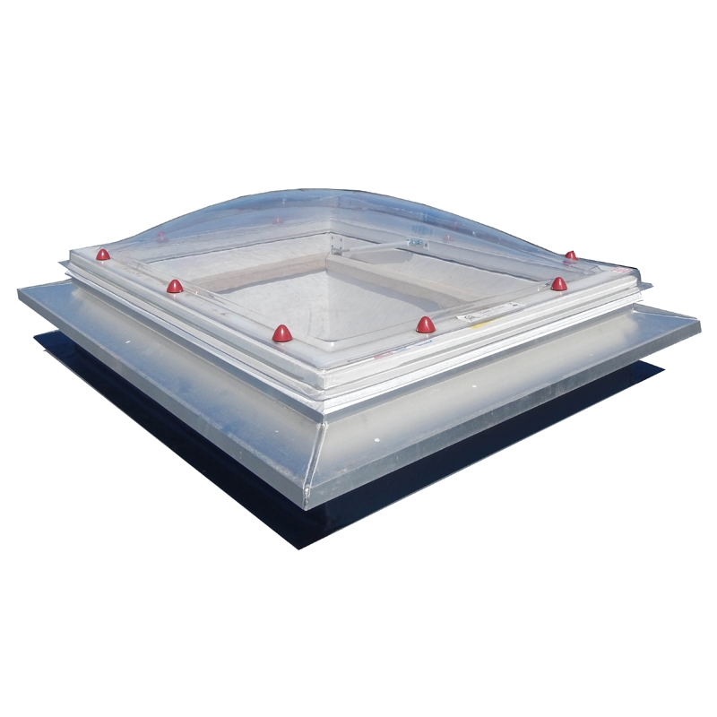R5 Em-Hatch access hatch, polycarbonate triple skin clear with PVC 150mm vertical curb to suit roof opening size of 600mm x 900mm, capable of opening to 85 degrees.