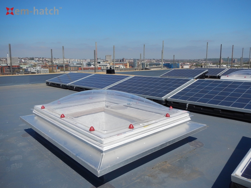 R5 Em-Hatch access hatch, polycarbonate triple skin clear with PVC 150mm vertical curb to suit roof opening size of 600mm x 900mm, capable of opening to 85 degrees. Units to incorporate : Friction stays, internal handle, espagnolette LH locking with key. Hinged on the short... Read More