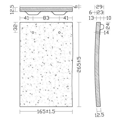 This 265mm x 165mm tile is suited to pitches from 35° to 90° (subject to fixing specifications) with a minimum headlap of 65mm below 90° and 35mm at 90°, and a maximum headlap of 88mm. Alongside a minimum gauge of 88mm, the maximum gauge is 100mm below 90° and 115mm at 90°. With a thickness of 12mm, the tile offers a coverage of 60 tiles per m² below 90° and 52 tiles per m² at 90°.