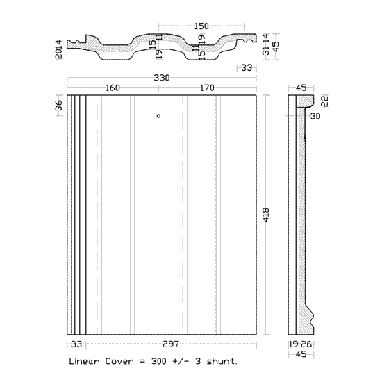 Coverage : 10.5 tiles/m2 at 318mm gauge.