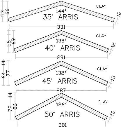 There are a range of different angles to choose from, and it's important to note that Arris Hip Tiles are specifically designed for use with plain 90° angles. Four of these tiles can cover pitches between 35° and 51.5°.