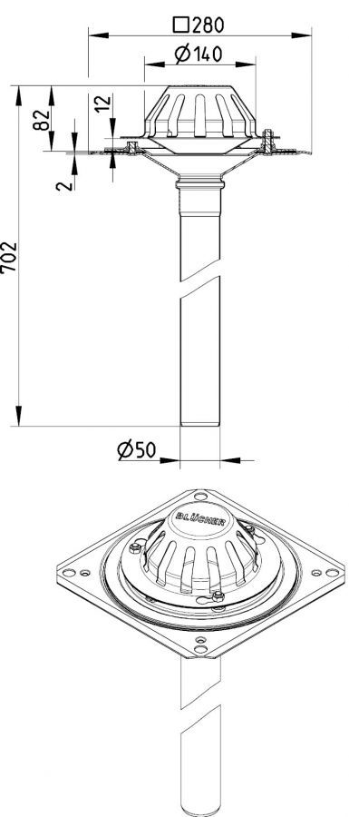 The 280mm x 280mm flange provides stability and easy integration into your roofing system. As for the pipe diameter, this measures 50mm for compatible systems.