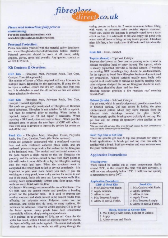 Roofing Superstore Complete Fibreglass Roofing Repair Kit - 1m2 Kit contents 1x 2.5kg roofing resin. 1x 1kg roofing topcoat - dark admiralty grey. 1x 0.45kg of 450g glass fabric. 1x 100ml catalyst. 1x 30ml measure cup. 2x 2" brush. 2x pairs of latex gloves. 2x 32oz mi... Read More