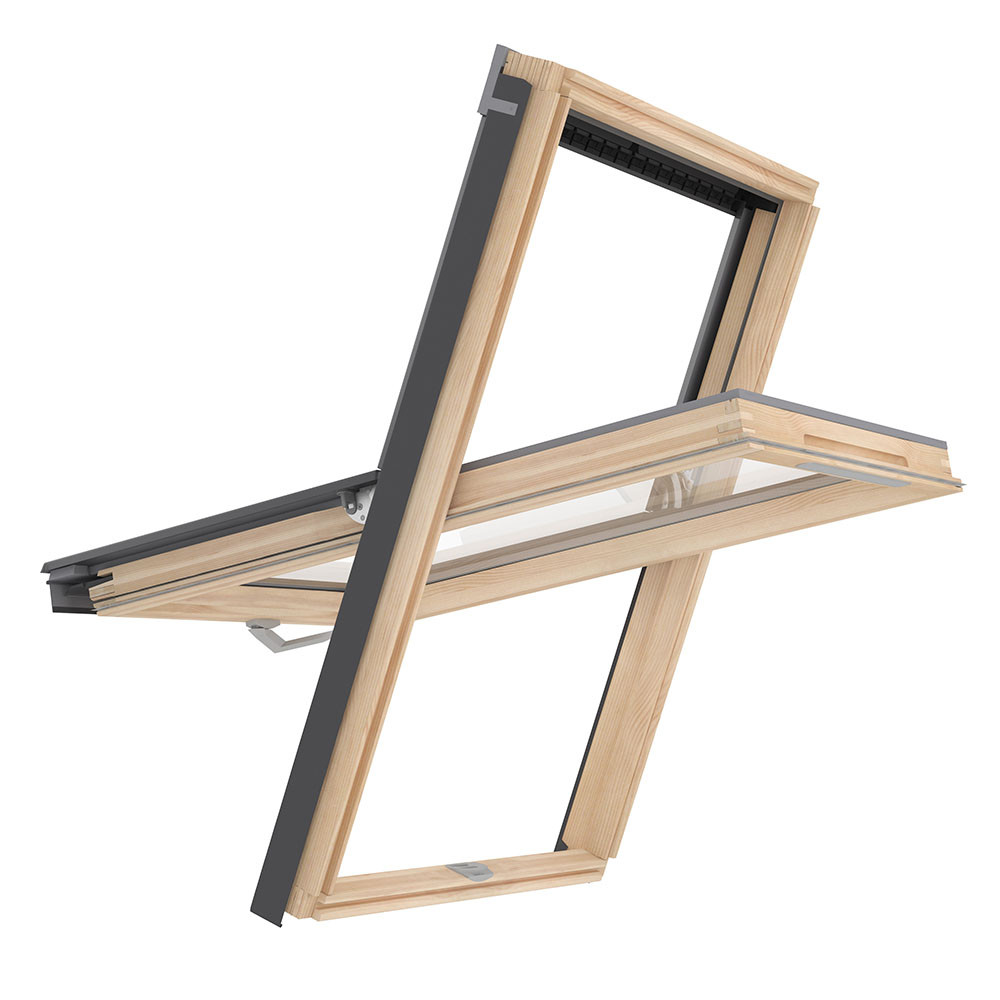 Thanks to its reduced-width Slim frame, this Slim Vent centre pivot roof window stands out from other options as the ideal choice with a reduction of cost without impacting quality and thermal performance. Due to its double glazing and two low-emission (heat-reflective) coatings, it has an impressive thermal insulation parameter of 1.3W/m²K. Its toughened external pane ensures excellent durability even in adverse weather conditions such as hail. Manufactured from kiln-dried laminated pine wood, this Slim Vent roof window features fungicide protection and a water-based lacquer finish.