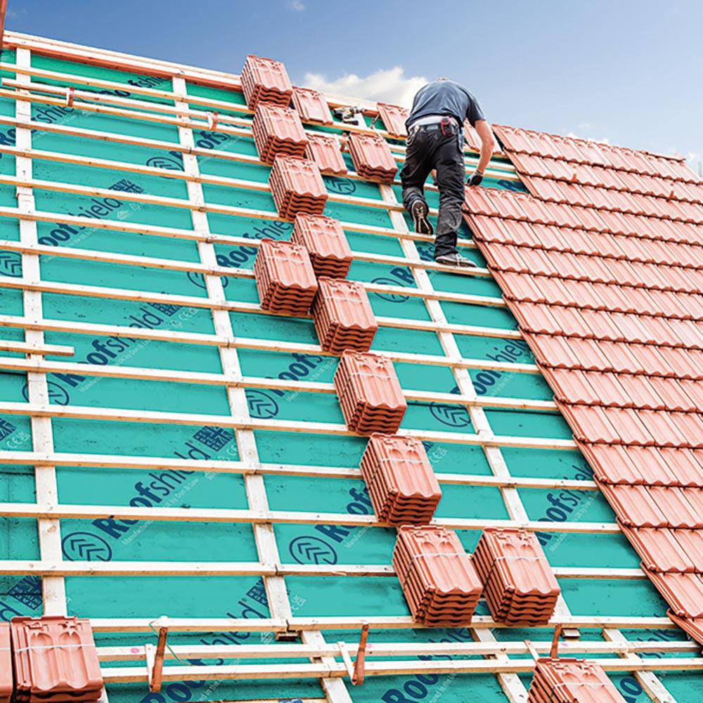 Its low vapour resistance, air permeability, and exceptional watertightness make it a highly effective breather membrane when installed under tiles and slates. Roofshield's exclusive and patented meltblown core allows for excellent airflow and moisture vapour transport from the roof space, preventing the presence of condensation and effectively eliminating interstitial condensation in pitched roofs.