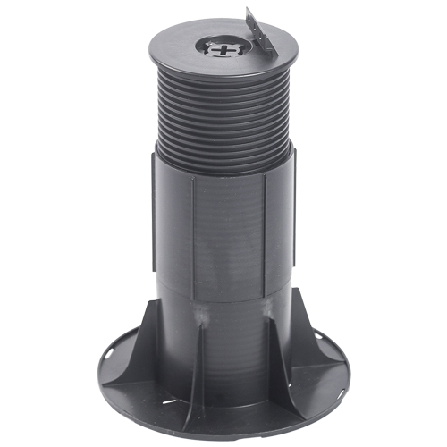 Created with a 200mm diameter support base that will evenly distribute the decking load and shield membranes, this RynoDeck pedestal has a threaded column that helps to achieve the precise height needed within the given range with millimetre adjustments while the 126mm height extension collar enables height build-up for large varying heights. Featuring a support head, this decking pedestal make use of a heavy-duty locator bracket that helps to support joists of up to 80mm wide.