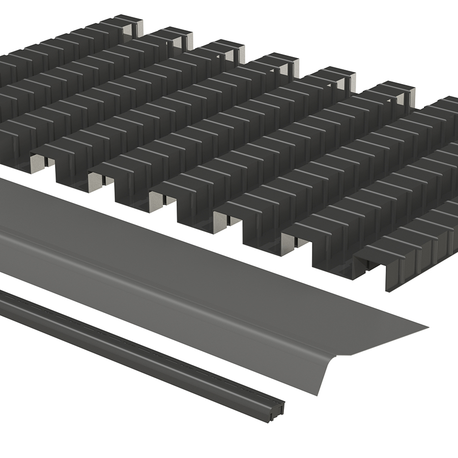 The over-fascia ventilation strip ensures excellent resistance to driving rain and large insects. The spacer tray creates a clear air path over the insulation, irrespective of roof pitch and soffit width. The underlay support tray eradicates the issue of long-term deterioration of the underlay at the eaves and inhibits sagging of the underlay behind the fascia.