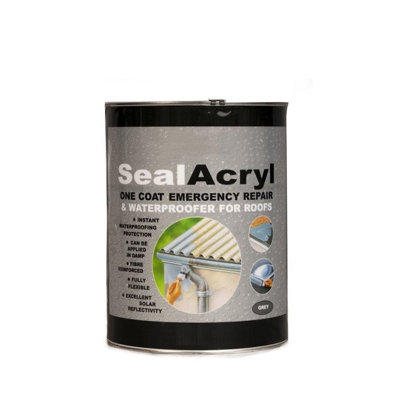 For renovation of all types of roof structure. Provides waterproof protection of : flat and pitched roofs, corrugated asbestos, roof lights, flashings, roofing felt, gutters, slate, asphalt, lead, glasshouses, metal and fibregalss. Will also bridge small gaps and cracks. Treat all details first, in areas where excessive movement may occur additional reinforcement can be incorporated into the coating. Sealacryl can be applied in one coat, but experience has shown that a two coat application ensures a greater uniformity of coating thickness. Do not thin. Apply Sealacryl using either a brush or roller.