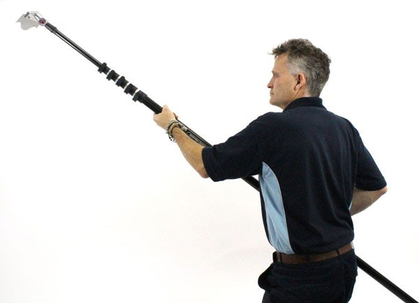 SkyScraper can be used from the safety of the ground, and from elevated platforms up to five storeys because it is compatible with a wide variety of telescopic poles including SkyPole.