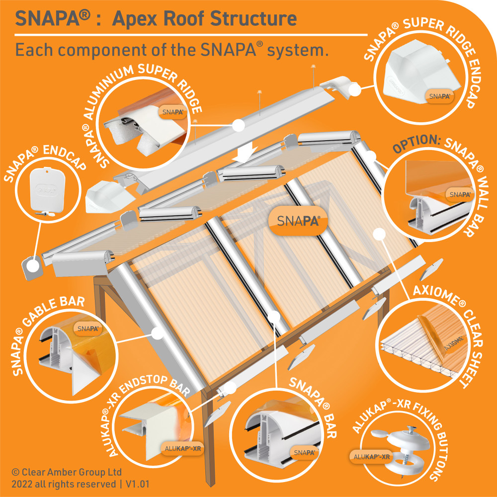 This SNAPA® Wall Side Bar is a cost-effective snap-fix glazing bar that will provide an attractive finish to the edge of your polycarbonate sheets on the final rafter of your structure, where there is an adjoining side wall. Suitable for various thicknesses of polycarbonate, the SNAPA® system can be used to create lean-tos, carports, pergolas, canopies and more.