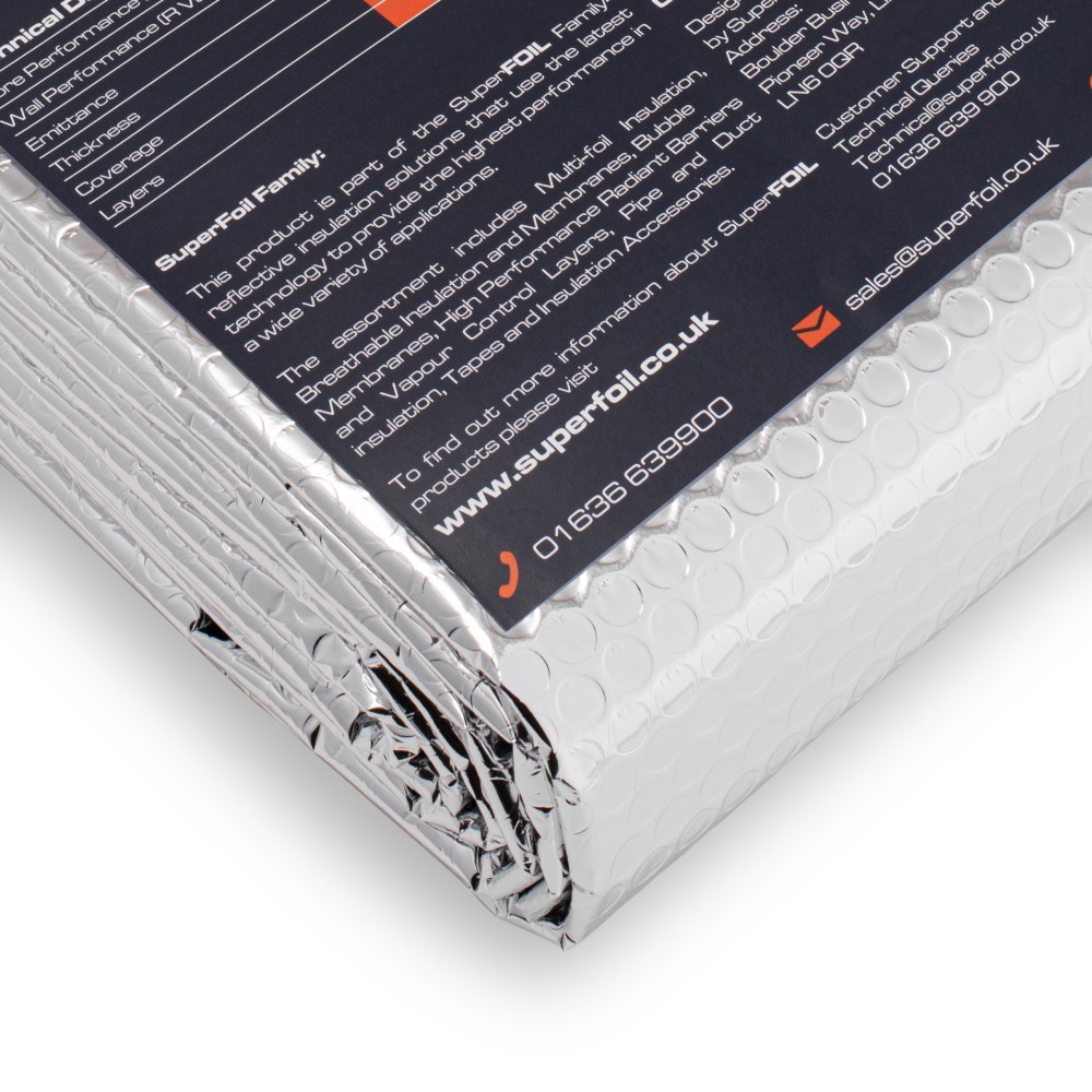Tested to the highest UK standards, this high-quality SuperFOIL SFBA radiation foil insulation is specially designed to minimise heat loss and maximise energy savings in your home. Boasting 95% efficiency at Reflecting Radiant energy, its 3mm bubble foil insulation reflects over 95% of heat into your room, ensuring you're getting the most out of your heating system thanks to low emissivity technology.