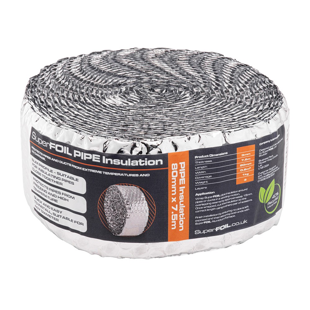 Boost your home's energy efficiency and lower household bills with the SuperFOIL Radiator and Pipe Insulation Set. This convenient combo includes the Rad-Foam Radiator Reflector (0.6m x 3m) and Pipe Insulation (80mm x 7.5m), delivering a dual solution to minimise heat loss.