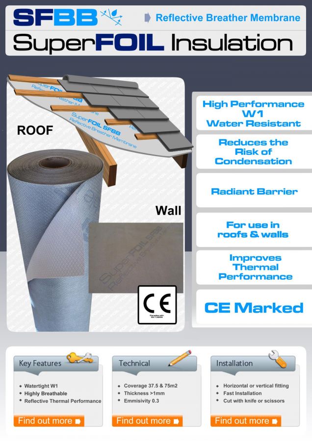 SuperFOIL SFBB is the UK’s best value reflective watertight reflective breather membrane.