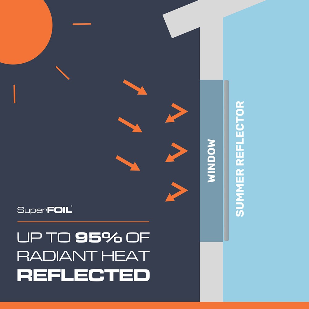 Beat the summer heat with the 3mm thick SuperFOIL Window Reflector, your ultimate DIY solution for cool, comfortable spaces. Designed to reflect up to 95% of the sun's radiant heat, this high-performance kit keeps your indoor temperatures in check while cutting down on energy costs and reducing reliance on air conditioning.