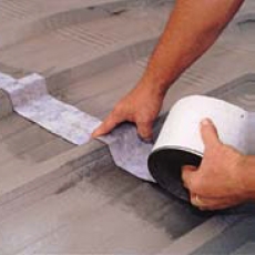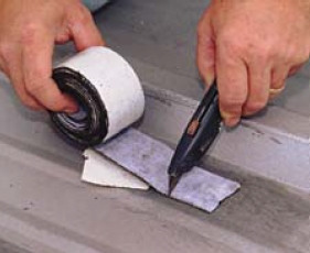 A self-adhesive, polyester reinforced tape, manufactured specifically for the demanding requirements of metal roof seam and fastener weatherproofing. Just prime, peel and stick. Excellent bond adhesion, elongation, cold flex and oxidation resistance. Installs much faster than compound-type products and can be immediately coated with reflective or waterproofing coatings. Bonds tight even in colder weather.
