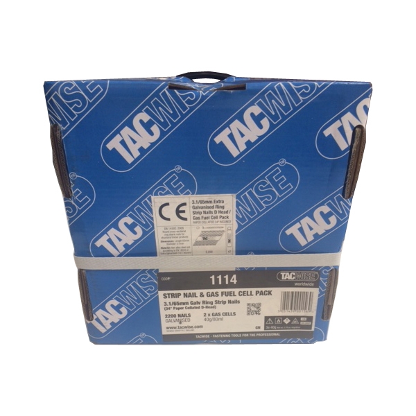 Tacwise Strip Nail & Gas Fuel Cell Pack 3.1mm x 65mm - 2200 Nails & 2 Gas