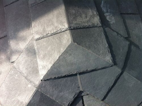 Mechanically fixed, these angled ridge to hip junction caps come in different sizes and have been thoroughly tested to BBA, ETA and CE standards for fire rating, water absorption, wind, driven snow and rain. Its fitment is universal, so its height depends on your roof pitch and can be laid from almost 0° to 90°. Six units cover one linear metre in ridge/hip length, and each unit needs to be warmed up using a hot-air gun along the ridge before bending it into shape.