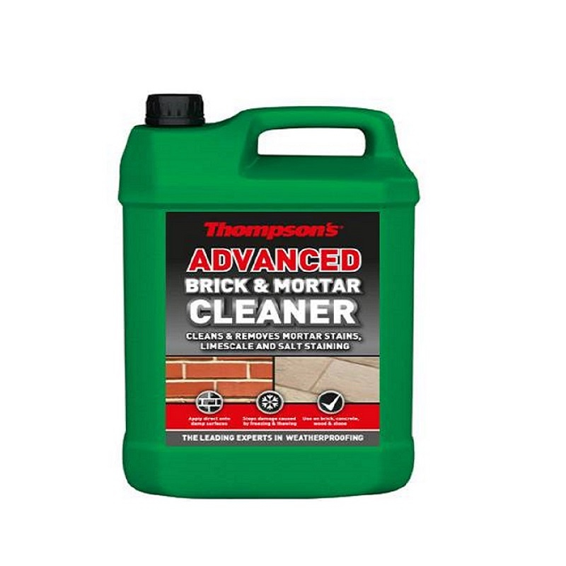 Thompson's Advanced Brick & Mortar Cleaner removes mortar stains, limescale and efflorescence in just minutes. Use before applying Water Seal. The cleaner is suitable for bricks, tiles, concrete and stone. To clean large areas, dilute before use.