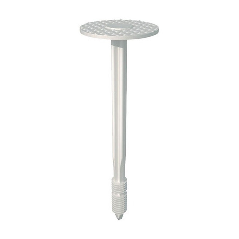 Designed to anchor insulation material to concrete & masonry substrate materials such as concrete, stone, brick & block. One piece impact resistant copolymer. Once installed, the head of the fixing should be taped and sealed to avoid any contact with wet plaster. Failure to do so may result in surface damage