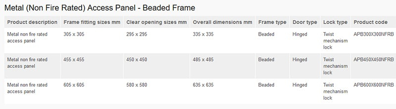 The Metal access panel is Polyester powder coated to Ral 9016 White and can be painted in any colour prior to or after installation. Achieve a frameless, flush finish as a result of the beaded frame which can be installed into an aperture and plastered over.