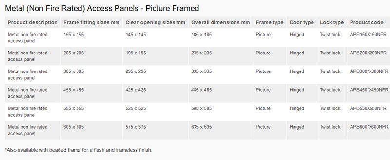 Features & Benefits: Timloc Non-Fire Rated White Picture Frame 200 x 200mm Metal Access Panel