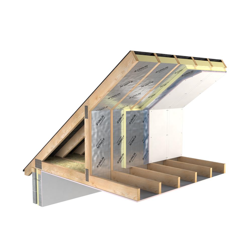 The high performance to thickness ratio of Unilin Thin-R pitched roof boards gives the maximum insulation values with minimal intrusion into the living area below.