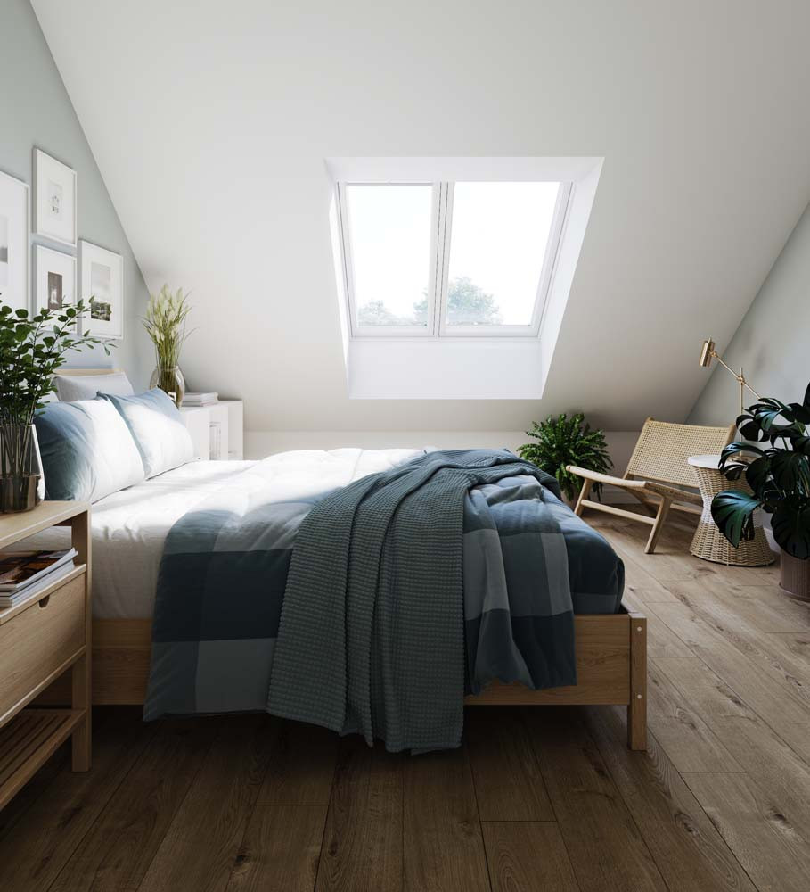 Designed to suit roof pitches of 15° to 90°, these VELUX 2-in-1 Windows are ideally suited to small and medium-sized rooms, such as bedrooms, bathrooms or home offices. For larger spaces, you can also combine this window with other VELUX windows to ensure you achieve the optimal level of natural daylight in your rooms. Windows have white painted interior finishes that look crisp and suit modern aesthetics.