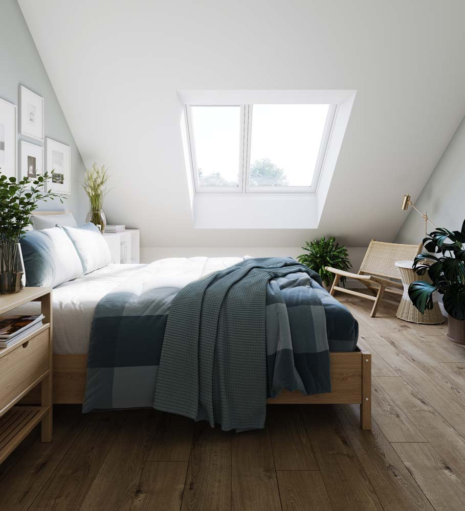 Designed to suit roof pitches of 15° to 90°, these VELUX 2-in-1 Windows are ideally suited to small and medium-sized rooms, such as bedrooms, bathrooms or home offices. For larger spaces, you can also combine this window with other VELUX windows to ensure you achieve the optimal level of natural daylight in your rooms. Windows have white painted interior finishes that look crisp and suit modern aesthetics.