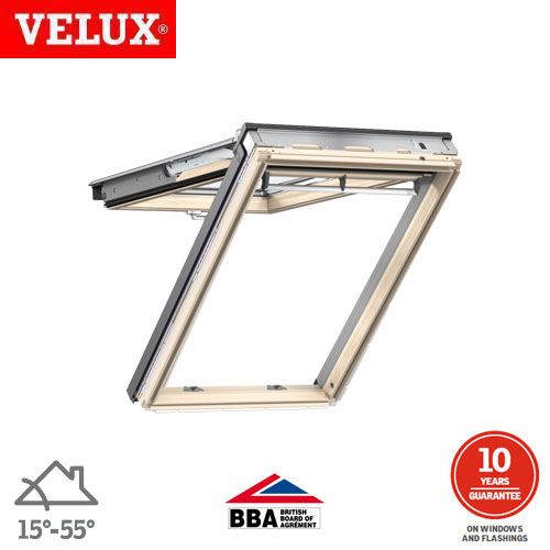 VELUX GPL MK04 3050 XX65 Pine Top Hung Window Toughened - 78cm x 98cm This is a double glazed top hung window with toughened glazing and has a uValue of 1.3. Special springs have been fitted to this window to allow them to be used with roof pitches betw... Read More