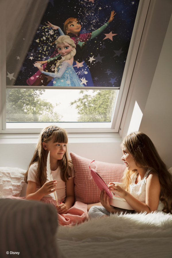 This Disney & VELUX blind features Anna and Elsa from Disney’s Frozen.