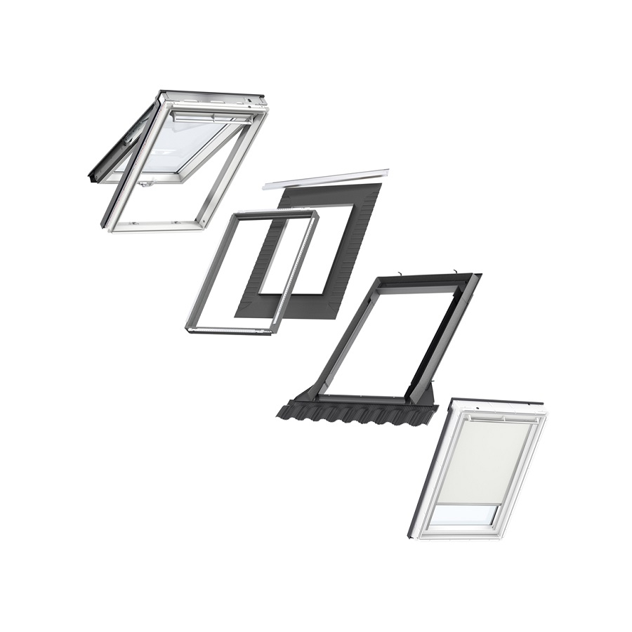 Alongside the window and blind, in this VELUX bundle there is a 15-55-degree tile flashing that will weatherproof the frame of the window and connect the frame to the tile seamlessly. There is also an insulation collar, underfelt collar and transverse drainage gutter in this kit.