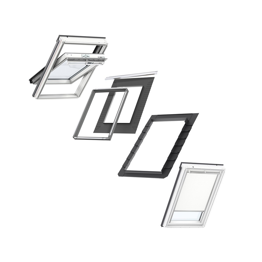 Alongside the window and blind, in this VELUX bundle there is a 15-90-degree slate flashing that will weatherproof the frame of the window and connect the frame to the slate seamlessly. There is also an insulation collar, underfelt collar and transverse drainage gutter in this kit.