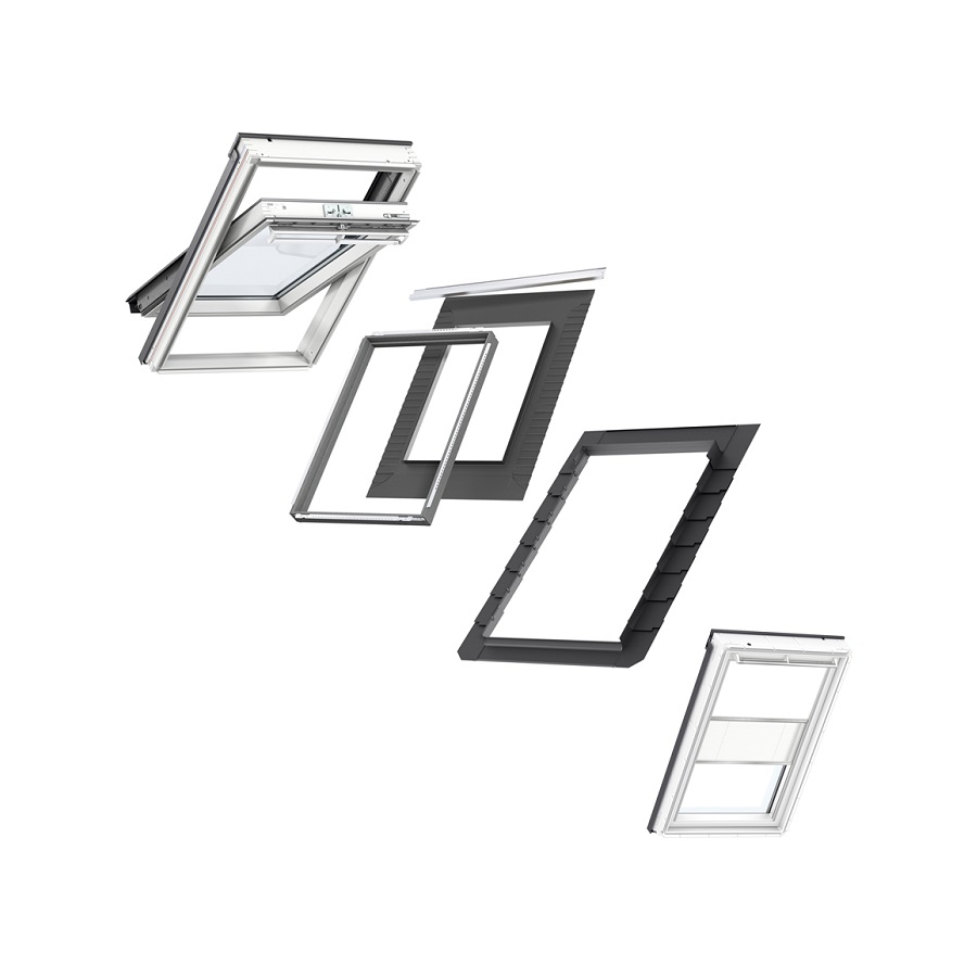 Alongside the window and blind, in this VELUX bundle there is a 15-90-degree slate flashing that will weatherproof the frame of the window and connect the frame to the slate seamlessly. There is also an insulation collar, underfelt collar and transverse drainage gutter in this kit.