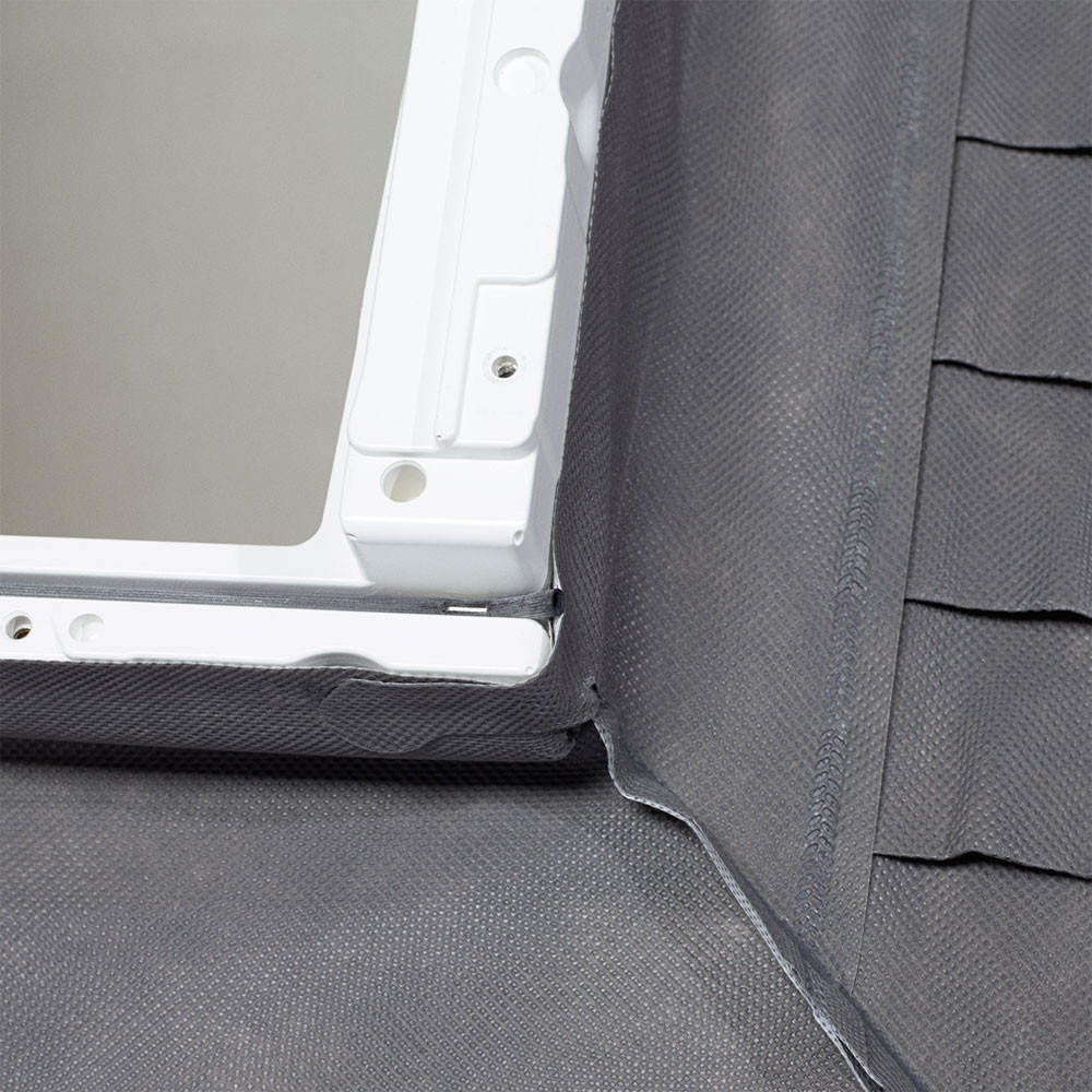 For standard installation heights, you can install the brackets at the bottom and top of the window frame, level with the red line. Featuring a BFX underfelt collar, this VELUX flashing provides a weathertight finish with effective rainwater drainage as it is fitted between the roof covering and the window for a sleek appearance. With a BDX insulation collar, it helps to eliminate cold bridges and reduce heat loss by insulating around the roof window frame.