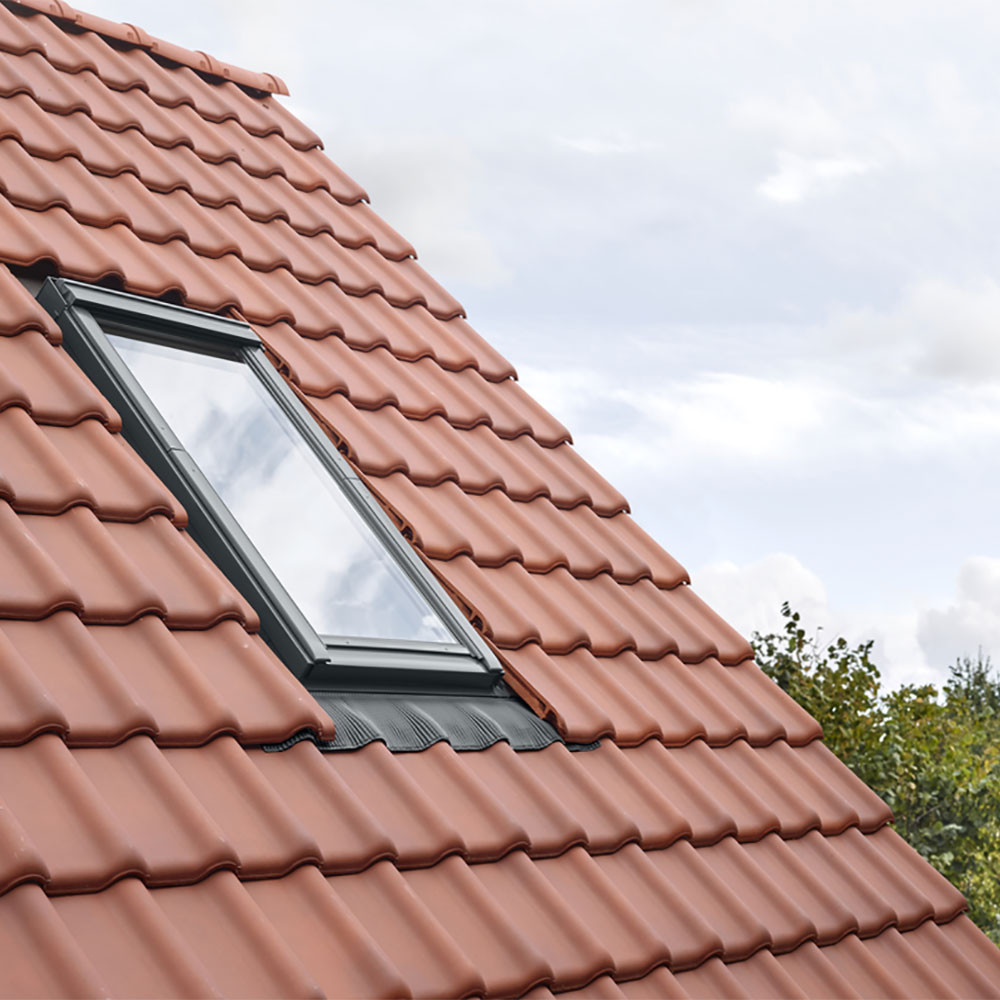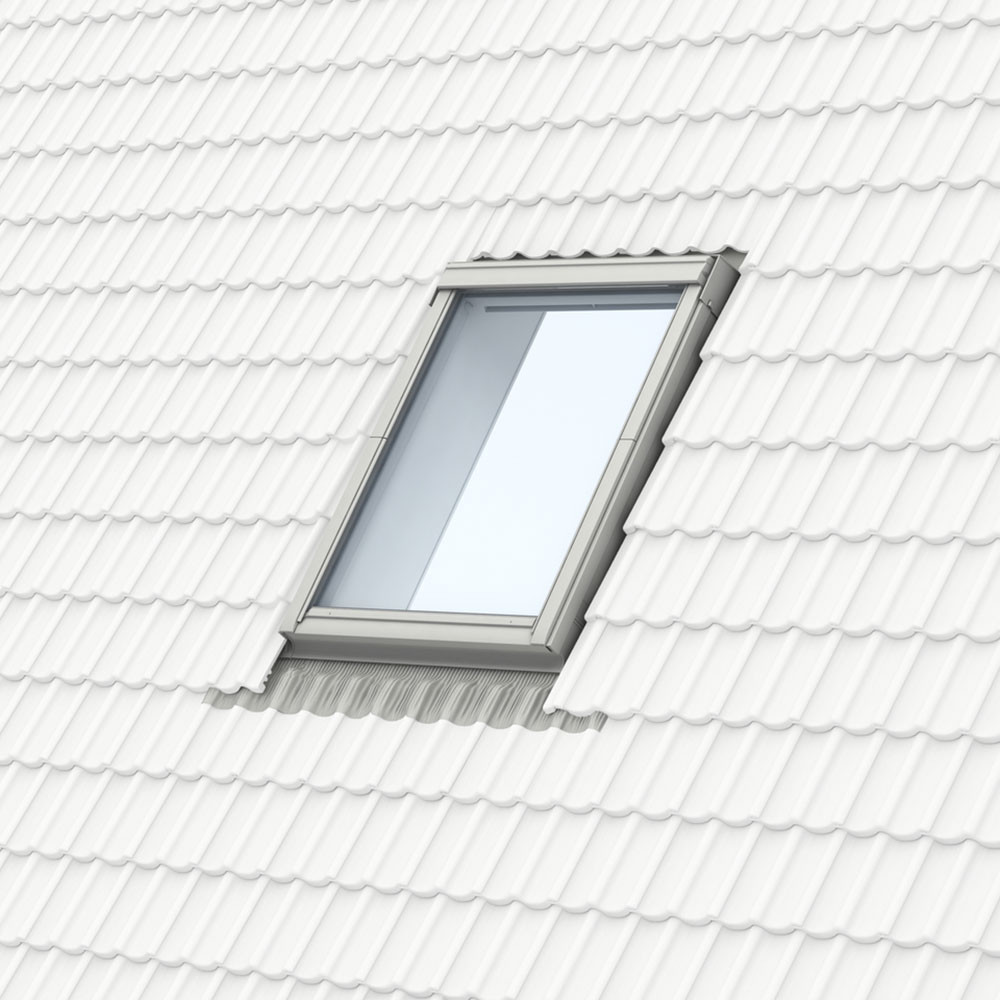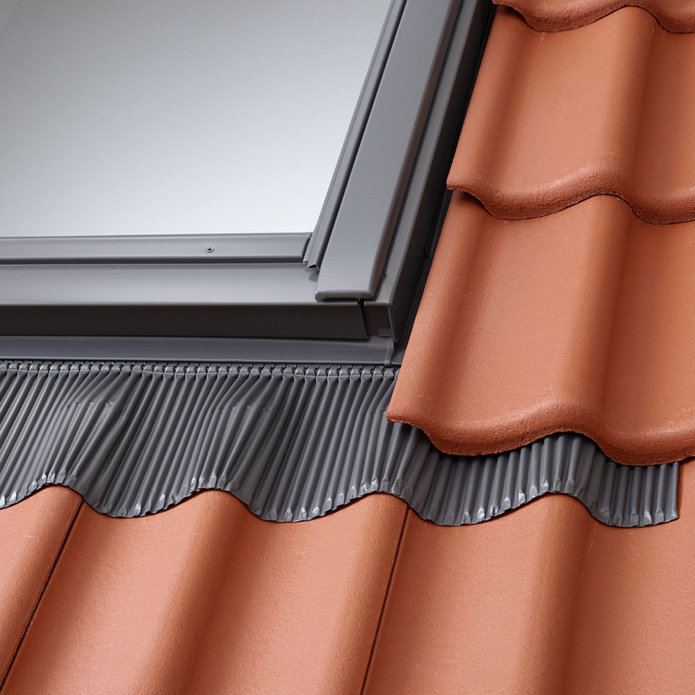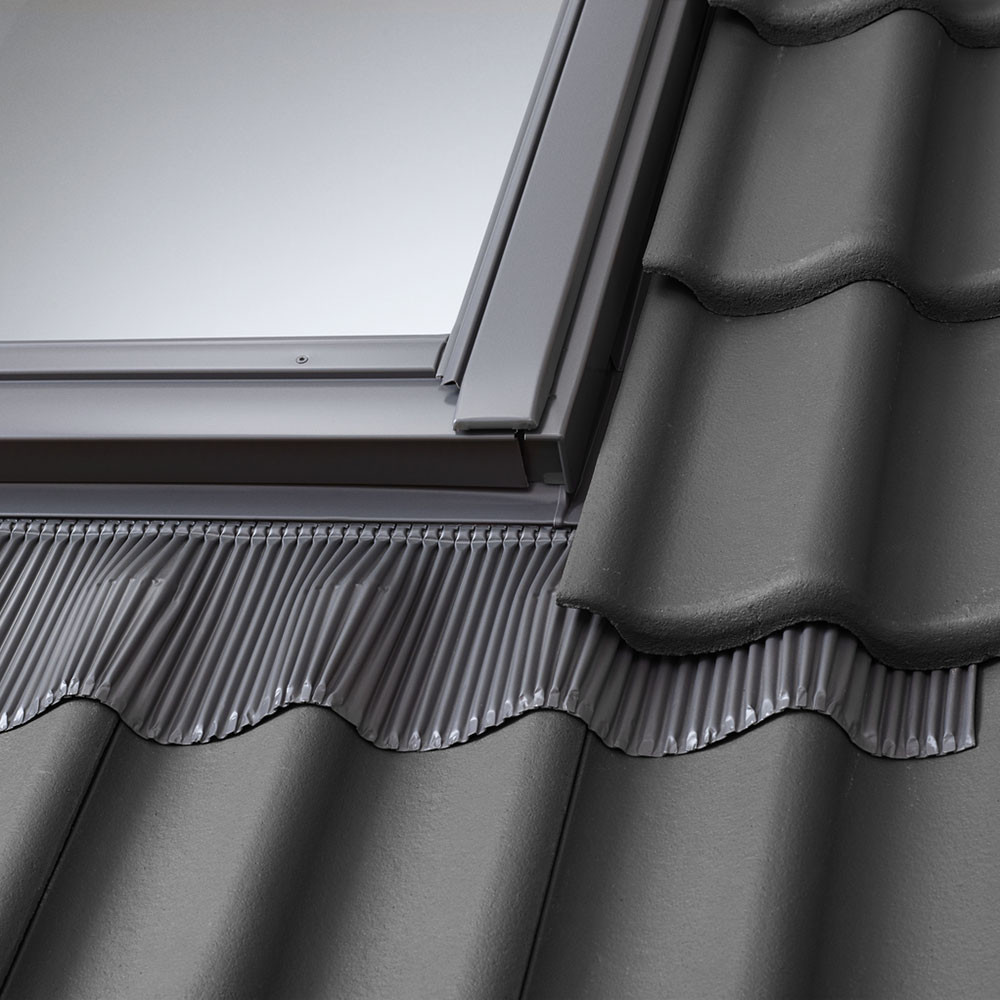 This standard tile flashing from VELUX is suitable for fitting one roof window into profiled or flat roof materials including interlocking slate, corrugated sheeting and thatch roofs with a maximum profile of 120mm at a roof pitch between 15° and 90°.