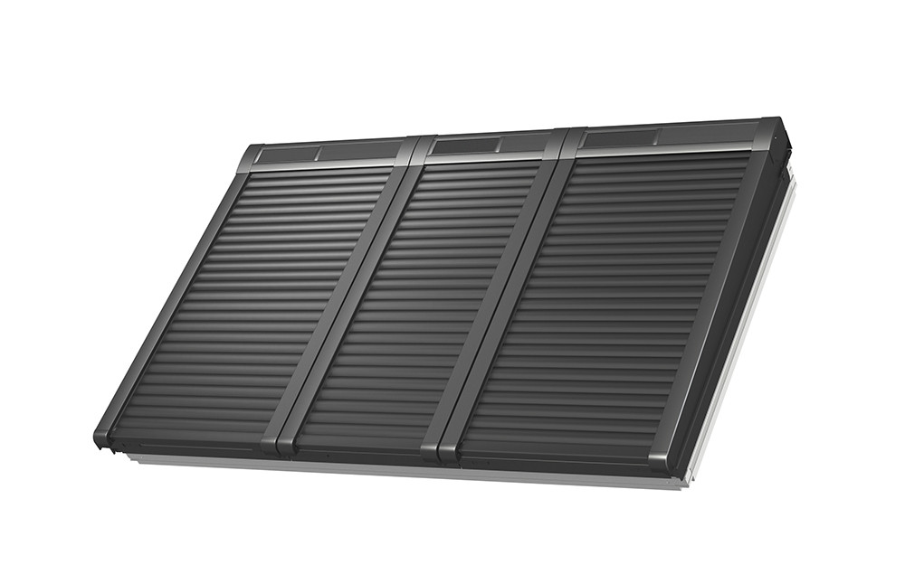 Available in a choice of sizes to suit your VELUX 3-in-1 window, these solar-powered roller shutters have been tested against the wind, UV rays and heat degradation. Constructed from durable polyester with a PVC coating on either side, for additional strength and support, the shutters are also reinforced with sturdy aluminium slats.